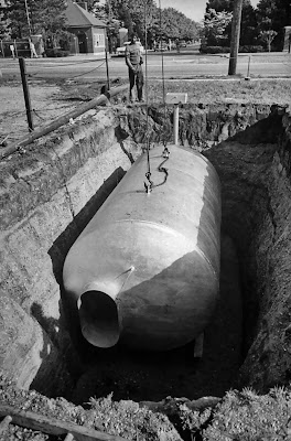 Why, it's a regular home away from doom. I love how the family is still all dressed nicely and reading stories. They probably would have read that same book 800 times by the time they could leave there. Not to mention the "stop touching me!" between the kids and the mom saying "Spam again for supper!" It kind of reminds me of burying a septic tank and probably is just as rank after a couple weeks. I remember as a kid, someone had one of these in his yard. Everyone was intrigued by it and he wasn't supposed to tell anyone because his parents didn't want the neighbors pounding down the hatch when the Commies attacked. We actually envied him more than the kid who had a swimming pool.